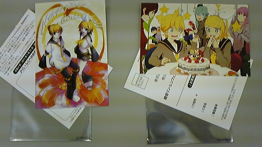 もちろん、M1中はコミケの会議でした!(挨拶 あとモンハン。 どうも。 ふにふにです。 今年は今日が最後の出社となりました。 このあとはヒミツのイベントに参加してきます。 皆さん、戦いましょう。( そんな忙しい中、どうしても今年中にやっておきたい買い物があったのでアニメイトで購入してきました。 まずはこれ。 ロミオとシンデレラのCDです。 少し前に出てて、めちゃくちゃ欲しかったんですけど、なぜかなかなか売ってなく購入が遅れていました。 dorikoさんの作る初音ミクの歌は全部いい。 リアルアーティストよりもはるかにいい。( ジャケも可愛い。 これは良い買い物。 なんかリンとレンの誕生日だったらしくオマケももらいました。 ランダムで何枚かのカードが入っているようですが、当たったのは上記二枚。 ちょっと嬉しいオマケ。 それからふと思い出して買った声優が麻雀打つ企画のJ-1グランプリのDVD。 我等が福山潤をはじめ、小清水亜美とかあとは植田佳奈とか出てますね。 前回は浪川大輔がきてましたけど今回は近藤隆がきてる。 生徒会の一存の主役以来、結構注目してる声優さんなのでどんな麻雀を打つのか楽しみっす。 こっちは正月にでもゆっくりみましょうか。 さて、仕事しないと。( 本日のしょんぼりステーション、終了☆